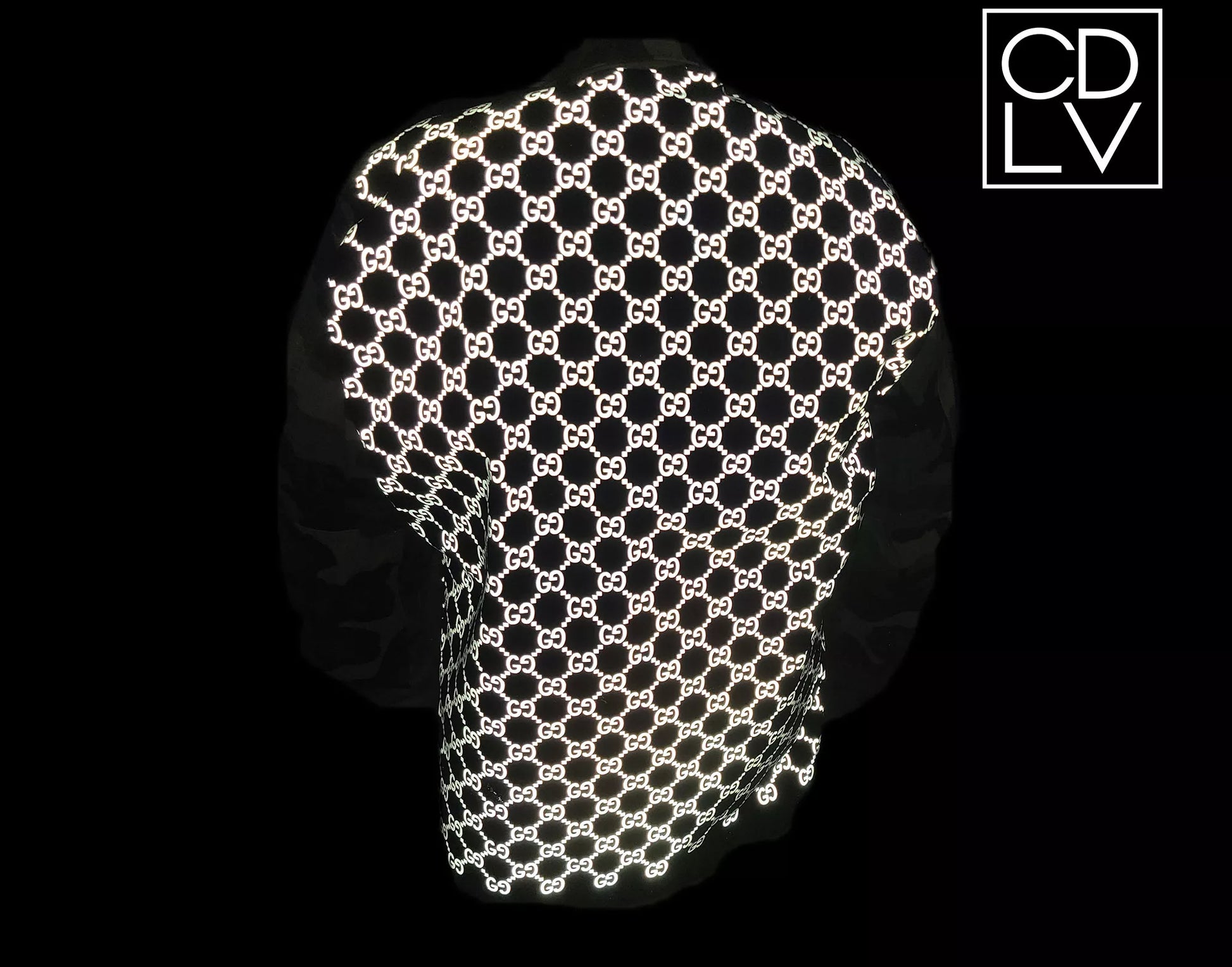 CDLV Gucci 3M Reflective Monogram-Inspired Vintage Military Jacket – Bold Elegance Meets Streetwear Edge